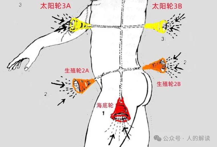 《认识脉轮》里讲过,每个脉轮的前方和后方成对合作,正面为A面,背面为B面。背面太阳轮3B与个人对自己身体健康的意图有关,如果我们具有保持健康的意图,该中心便是敞开的。